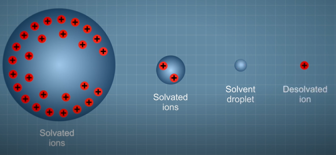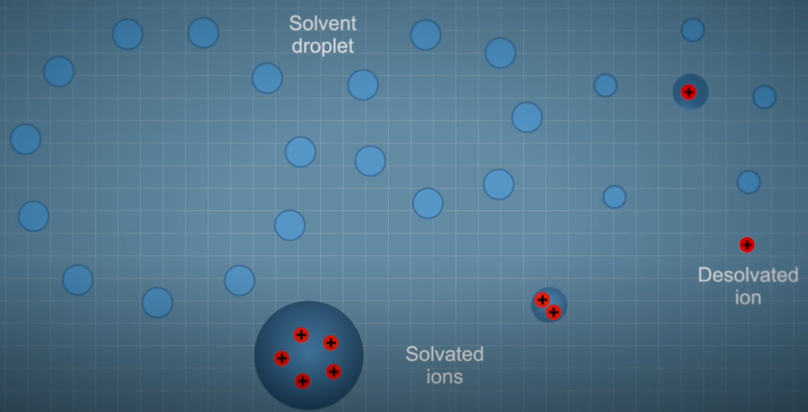 In the ESI source, the electric field is sufficient enough so that small droplets (solvated ions) turned to desolvated ions.