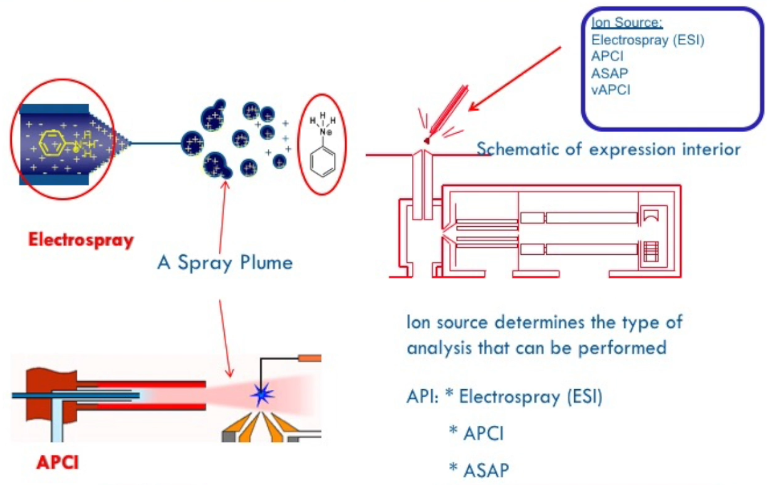 APCI technique: liquid was introduced through the capillary to the chamber. Liquid turns to plume. A discharge needle is placed in the plume. We put 4000 volts on it. Gas phase molecules are ionized by gas phase chemistry.