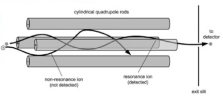 Ions go in this serpentine path in quadrupole analyzer.