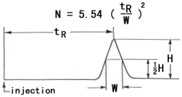 When you first use a column, we recommend you to measure its plate number before use. Plate number (N) can be calculated by the formula in the following figure.