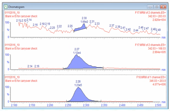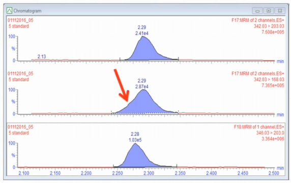 There's an interfering peak. And so when we first saw this, I got worried that maybe something had happened with the system. And then I just did what we'll talk about, which is I looked at the last batch, and I looked at the last set of batches.