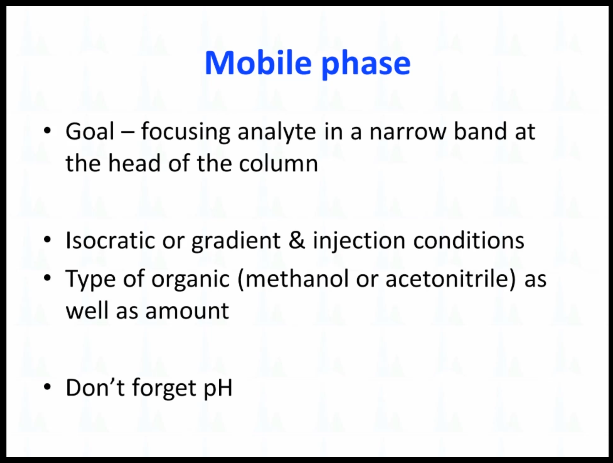 So there are some rules for this, your goal is focusing on the analyte in a narrow band, if you have isocratic versus a gradient, that you have to take that into account.