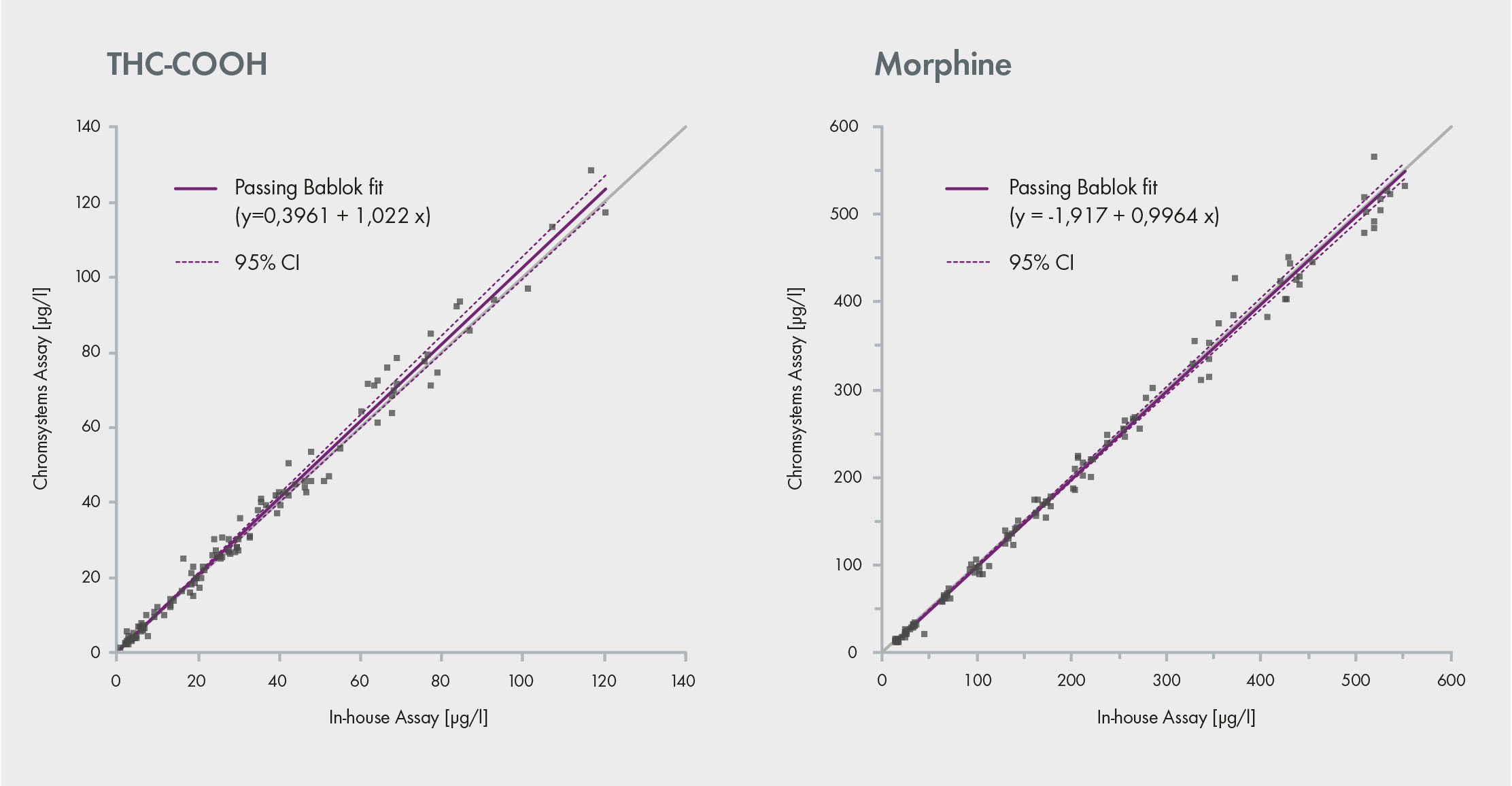 [1] Geffert et al., Validation of a New LC-MS/MS Assay for the Analysis of Drugs in Urine and Comparison with Established Analytical Methods (GC-MS and LC-MS/MS): Advantages for daily Laboratory Routine. GTFCh Symposium 2019.