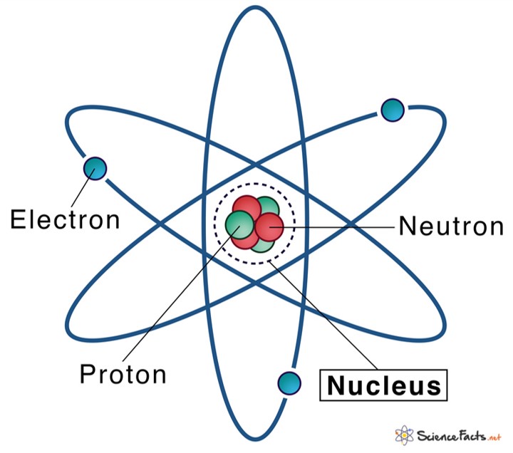 The nucleus (plural, nuclei) is defined as the dense, central part of an atom, consisting of two subatomic particles, namely protons and neutrons. A nucleus accounts for more than 99.9% of an atom’s mass but is 100,000 times smaller than it in size. The word ‘nucleus’ means ‘kernel of a nut’.